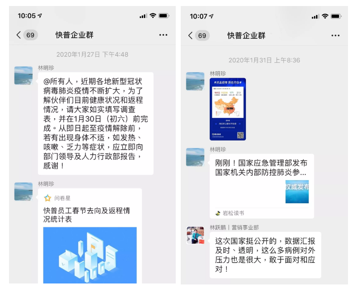 1月29日,為保障全體員工的健康安全,快普積極響應(yīng)當(dāng)?shù)卣甘荆俅伟褟?fù)工時(shí)間調(diào)整為2月10日。與此同時(shí),一場(chǎng)“保障健康、守護(hù)快普”的抗疫自救行動(dòng)在公司內(nèi)部打響了!