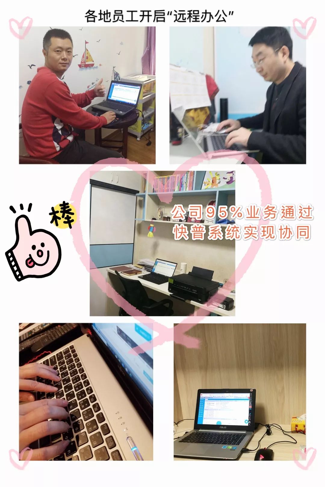 2月15日,公司正式成立“快普疫情防控工作組”,由各事業(yè)部報(bào)名推選的19位同事共同擔(dān)任。工作組從環(huán)境消毒、健康監(jiān)測(cè)、物資保障、防護(hù)知識(shí)宣導(dǎo)四方面全力抗疫,保障職場(chǎng)健康。