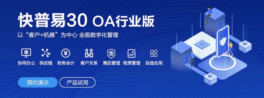 融合了全國大量OA企業(yè)成功的管理經(jīng)驗和成熟的業(yè)務(wù)模型,以“客戶+機器”為中心提供數(shù)字化轉(zhuǎn)型解決方案,全面解決銷售、服務(wù)、租賃等多種業(yè)務(wù)模式的管理需求,以及企業(yè)經(jīng)營核算分析。